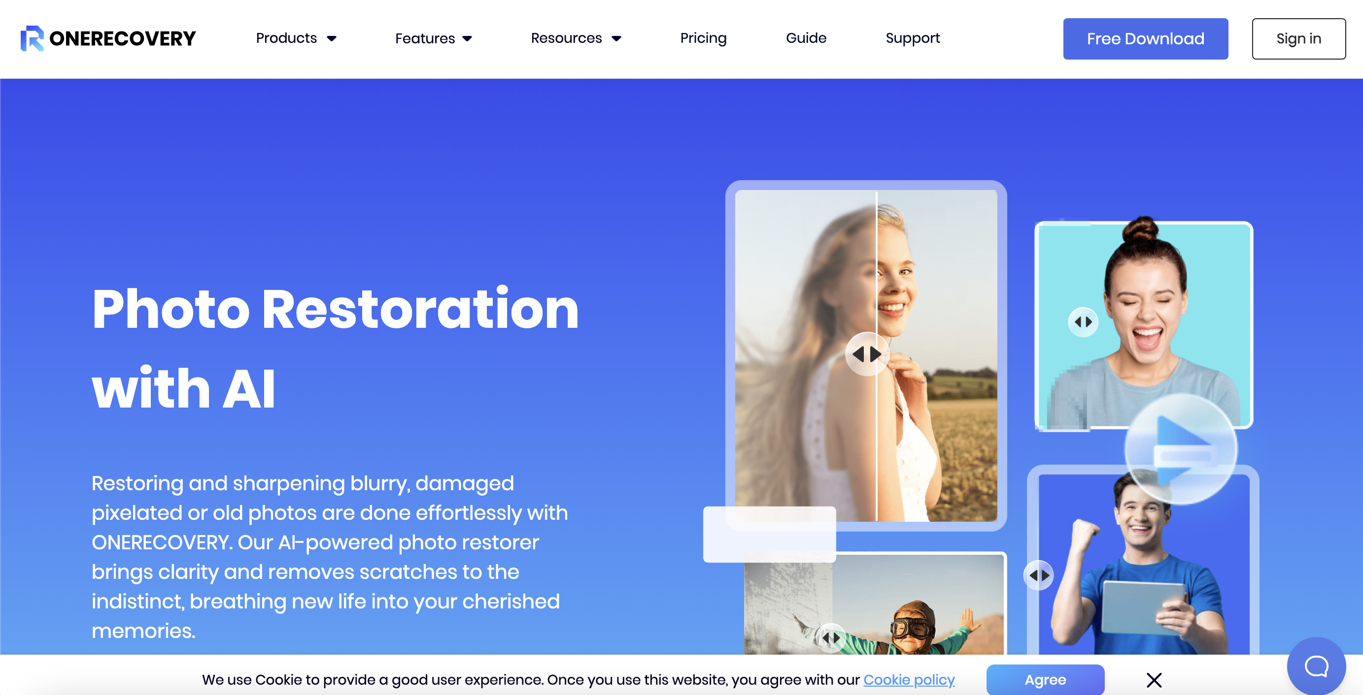 OneRecoveryは、最新のAI技術を駆使した写真修復ツールです。AIがぼやけた写真や古い画像を修復し、クリアで美しい写真に生まれ変わらせます。